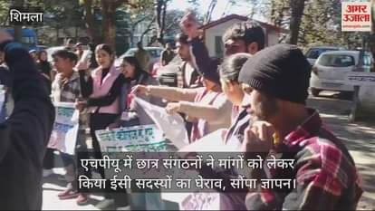 हिमाचल प्रदेश विश्वविद्यालय में छात्र संगठनों ने मांगों को लेकर ईसी सदस्यों का घेराव किया। एसएफआई व एबीवीपी पदाधिकारियों ने ईसी सदस्यों को मांगपत्र भी साैपे। आज एचपीयू में ईसी की बैठक आयोजित की जा रही है।