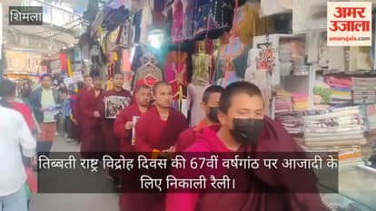 शिमला के शेर-ए-पंजाब से शाम 5:00 बजे तिब्बती समुदाय की ओर से तिब्बती राष्ट्र विद्रोह दिवस की 67वीं वर्षगांठ पर आजादी को लेकर रैली निकाली गई। इस दौरान लोअर बाजार नारों से गूंजता रहा। इस रैली में समुदाय के सैकड़ों लोगों ने भाग लिया।