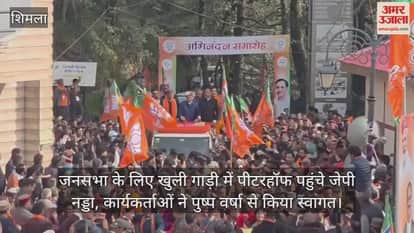 जनसभा के लिए खुली गाड़ी में पीटरहॉफ पहुंचे जेपी नड्डा, कार्यकर्ताओं ने पुष्प वर्षा से किया स्वागत
