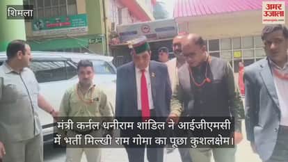 स्वास्थ्य एवं परिवार कल्याण मंत्री कर्नल धनीराम शांडिल बुधवार को आईजीएमसी में मंत्री यादविंदर गोमा के पिता डॉ. मिल्खी राम गोमा का कुशलक्षेम पूछने पहुंचे। मिल्खी राम गोमा सांस की परेशानी के चलते स्पेशल वार्ड में भर्ती है।