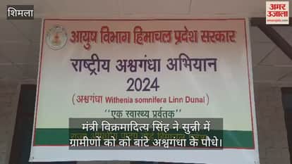 VIDEO : मंत्री विक्रमादित्य सिंह ने सुन्नी में ग्रामीणों को बांटे अश्वगंधा के पाैधे