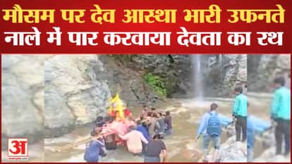 Video: मौसम पर देव आस्था भारी, चार फीट गहरे उफनते नाले में पार करवाया देवता का रथ