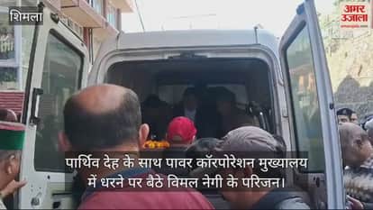 VIDEO : पार्थिव देह के साथ पावर कॉरपोरेशन मुख्यालय में धरने पर बैठे विमल नेगी के परिजन, पत्नी ने ये मांग उठाई