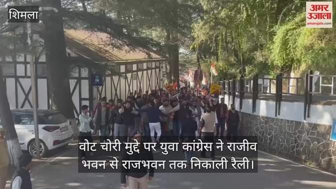 हिमाचल प्रदेश युवा कांग्रेस की ओर से गुरुवार दोपहर को कांग्रेस कार्यालय राजीव भवन से राजभवन तक वोट चोर-गद्दी छोड़ अभियान के तहत रैली निकाली। इस दाैरान केंद्र सरकार के खिलाफ जमकर प्रर्दशन किया। राजभवन पहुंचने पर प्रदर्शन उग्र हो गया। इस दाैरान कार्यकर्ताओं व पुलिस के बीच धक्का-मुक्की भी हुई। युकां कार्यकर्ताओं को राजभवन में प्रवेश करने से रोकने के लिए पुलिस को हल्का बल प्रयोग करना पड़ा। इस दाैरान जमकर धक्का-मुक्की हुई। इस मौके पर भारतीय युवा कांग्रेस के महासचिव एवं राज्य प्रभारी शेष नारायण ओझा सहित पार्टी के अन्य वरिष्ठ नेता मौजूद रहे।