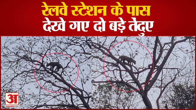 वीडियो: रेलवे स्टेशन के पास पेड़ पर चढ़े दिखे दो बड़े तेंदुए, लोगों में दहशत