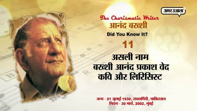 मशहूर लिरिसिस्ट और लेखक आनंद बख्शी को कौन नहीं जानता। मगर लिरिसिस्ट बनने से पहले क्या काम करते थे आनंद बख्शी, कौन सी थी वो पहली फिल्म जिसके लिए आनंद बख्शी ने लिखा था अपना पहला गाना? देखिए आनंद बख्शी के जीवन से जुड़़े कुछ रोचक तथ्य अमर उजाला टीवी की इस खास पेशकश में।