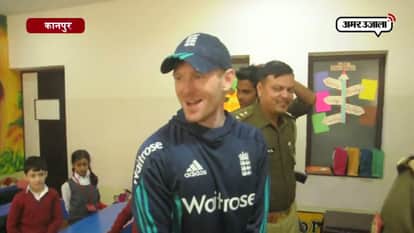 कानपुर में स्कूली बच्चों के साथ ईयॉन मॉर्गन की मस्ती