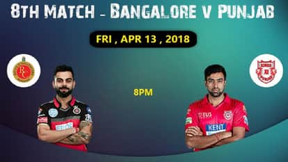बैंगलोर के एम चिन्नास्वामी स्टेडियम में रॉयल चैलेंजर्स बैंगलोर Vs किंग्स Xl पंजाब के बीच IPL सीजन 11 का आठवां मैंच खेला जाना है। दोनों टीमों के अगर इस IPL में परफॉर्मेंस की बात करें तो किंग्स Xl पंजाब एक मैच जीतकर प्वाइंट्स टेबल में रॉयल चैलेंजर्स बैंगलोर चार कदम ऊपर यानी तीसरे नम्बर पर है।