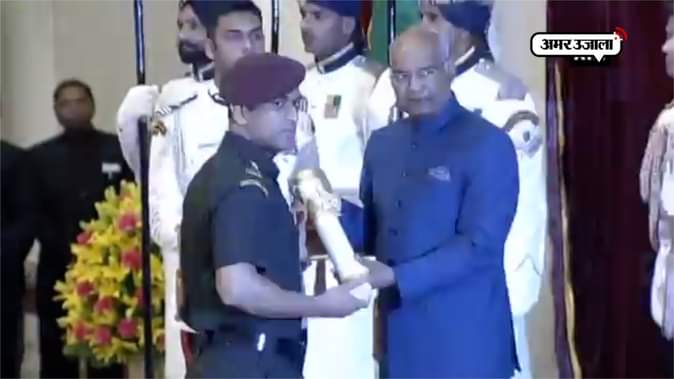 भारतीय क्रिकेट टीम के पूर्व कप्तान और विकेटकीपर महेंद्र सिंह धोनी को देश के तीसरे सर्वोच्च नागरिक सम्मान पद्म भूषण से नवाजा गया। राष्ट्रपति भवन में महेंद्र सिंह धोनी सेना की ड्रेस में नजर आए। यहां उन्हें राष्ट्रपति रामनाथ कोविंद ने पद्म भूषण सम्मान से सम्मानित किया।