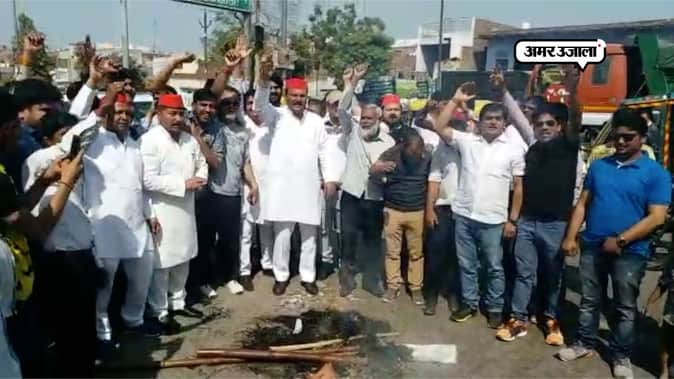 समाजवादी पार्टी कार्यकर्ताओं ने फूंका योगी कैबिनेट के इस मंत्री का पुतला