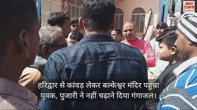 VIDEO : 400 किमी पैदल चल कांवड़ लेकर बल्केश्वर मंदिर पहुंचा युवक, पुजारी ने नहीं चढ़ाने दिया गंगाजल