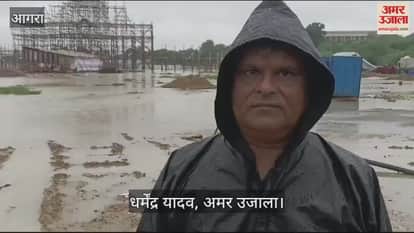 उत्तर प्रदेश के आगरा में एक तरफ कोठी मीना बाजार में जनकपुरी का उत्सव मनाने के लिए सजावट की जा रही थी। दूसरी तरफ इंद्र देव प्रसन्न हुए तो 24 घंटे से अधिक समय से लगातार वर्षा कर रहे हैं। इससे लाखों के खर्च से तैयार होने वाली जनकपुरी का माहौल पानी-पानी हो गया। मैदान में कीचड़ भर गया। टेंट, तंबू वगैरह गिर गए। बताते चलें कि इस बार जनकपुरी आबूधाबी पर किए जाने वाले उत्सव की तर्ज पर सजाई जा रही थी। इसलिए कुछ विशेष व्यवस्थाएं की गई थीं। लेकिन लगातार बारिश से मैदान में कीचड़ भर गया।