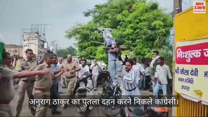 VIDEO : आगरा में अनुराग ठाकुर का पुतला दहन करने निकले कांग्रेसी, पुलिस ने छीन लिया