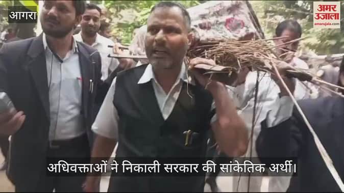 VIDEO : आगरा में अधिवक्ताओं ने निकाली सरकार की सांकेतिक अर्थी, पुलिस से हुई नोकझोंक; जानें पूरा मामला