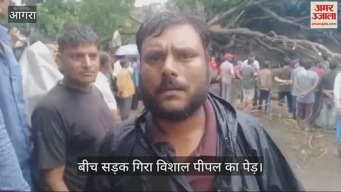 VIDEO : आगरा में बीच सड़क गिरा विशाल पीपल का पेड़, आवागमन रहा बाधित
