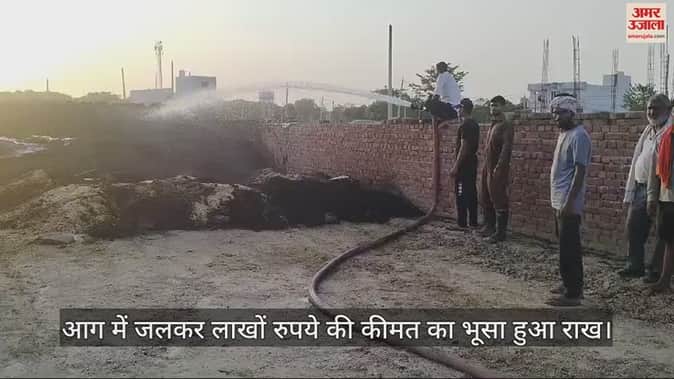 VIDEO : आगरा में भूसे की टाल में लगी आग, कड़ी मशक्कत के बाद बुझाई जा सकी