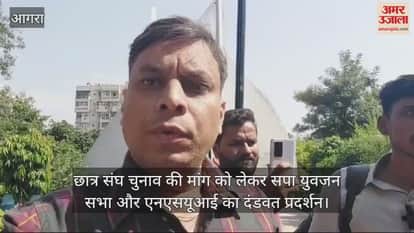 VIDEO : आगरा में छात्र संघ चुनाव की मांग को लेकर सपा युवजन सभा और एनएसयूआई का दंडवत प्रदर्शन