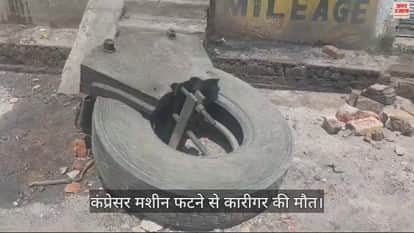 VIDEO : आगरा में टायर फर्म में कंप्रेसर मशीन फटी, कारीगर की मौत... दुकान मालिक घायल