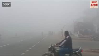 VIDEO : आगरा में देखें कोहरे की घनी चादर, रेंगते हुए चले वाहन