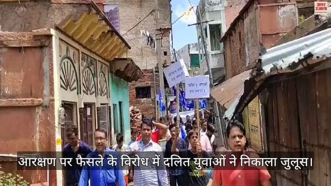 VIDEO : आरक्षण पर फैसले के विरोध में आगरा के जगनेर में दलित युवाओं ने निकाला जुलूस