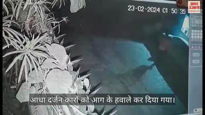 VIDEO : आधी रात को सड़क पर निकला युवक, घरों के आगे खड़ी कारों में लगाता चला गया आग
