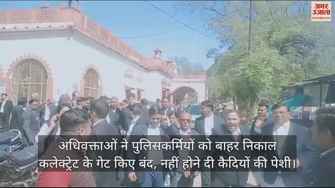 VIDEO : अधिवक्ताओं ने पुलिसकर्मियों को बाहर निकाल कलेक्ट्रेट के गेट किए बंद, नहीं होने दी कैदियों की पेशी