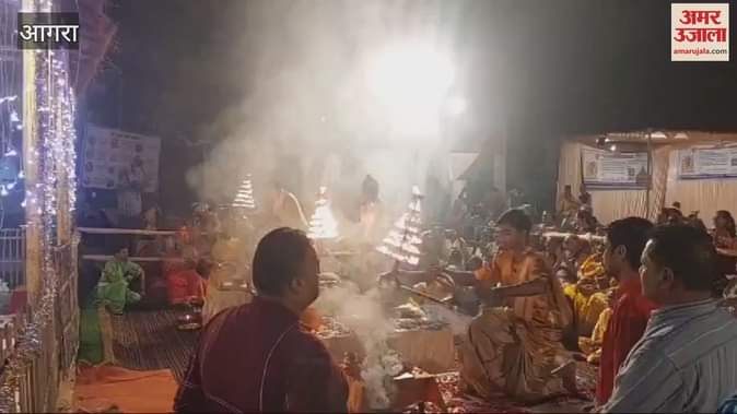 VIDEO : भागवत कथा के दौरान आरती, बड़ी संख्या में लोग रहे मौजूद