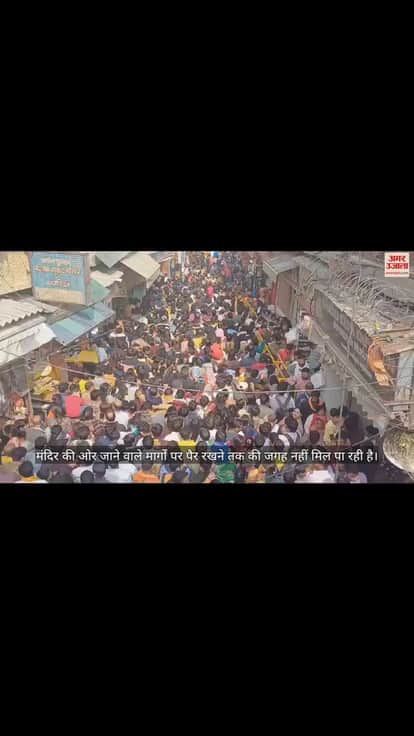 VIDEO : बांकेबिहारी के दर्शन के लिए तीन किमी लंबी कतार, वीकेंड पर दर्शन को उमड़ी भीड़