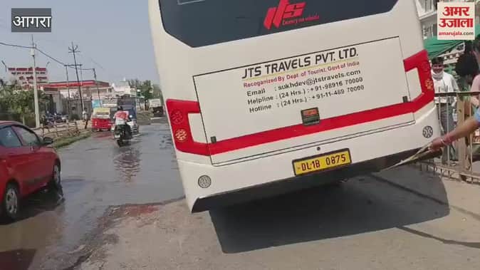VIDEO : गड्ढे और जलभराव में फंसी विदेशी पर्यटकों की बस, ताज देखने के लिए हो गई देरी
