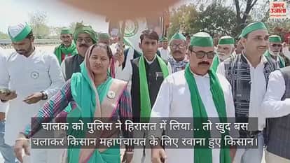 VIDEO : चालक को पुलिस ने हिरासत में लिया... तो खुद बस चलाकर किसान महापंचायत के लिए रवाना हुए किसान
