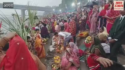 आगरा में हल्की फुहारों के बीच सूर्य उपासना और लोक आस्था के पर्व छठ के चौथे दिन मंगलवार को तड़के ही महिलाएं यमुना घाट पर पहुंच गई और सूर्योदय का इंतजार करने लगी। हालांकि मौसम खराब होने के चलते सूर्य बादलों में ही छिपा रहा। इसके बाद महिलाओं ने अर्घ्य और परिवार की सुख समृद्धि की कामना की। थाना एत्मादुद्दौला के सीताराम घाट पर पूर्वांचल दुर्गा पूजा समिति की ओर से छठ पूजा के लिए विस्तृत इंतजाम किए गए। सैकड़ों महिलाओं ने विधि विधान से छठी मैया की पूजा अर्चना की। श्रद्धालुओं की सुरक्षा व्यवस्था के लिए घाट के आसपास महिला पुलिसकर्मी भी तैनात रहीं।
