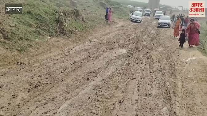 आगरा के पिनाहट में चंबल घाट मार्ग बारिश के बाद दलदल में तब्दील हो गया है। ऐसे में यहां से गुजरने वाले वाहन कीचड़ में फंस रहे हैं। बाहर निकालने के लिए ट्रैक्टर का सहारा लेना पड़ रहा है।