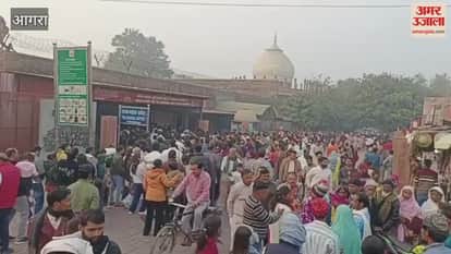 VIDEO: ताज देखने के लिए उमड़ी पर्यटकों की भीड़, सुबह से शाम तक लगी रही कतार