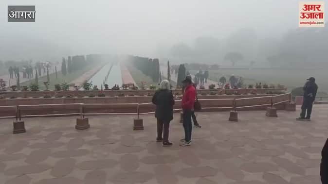 ताजनगरी में मंगलवार की सुबह कोहरे का भारी सितम देखने को मिला। विजिबिलिटी शून्य स्तर तक पहुचने के कारण दुनिया का सातवां अजूबा 'ताजमहल' पूरी तरह से ओझल रहा। सुबह 9:30 बजे तक स्थिति यह थी कि मुख्य गुंबद तो दूर, पर्यटकों को ताजमहल का मुख्य प्रवेश द्वार तक नजर नहीं आ रहा था। दूर-दराज से आए सैकड़ों पर्यटक दीदार न होने के कारण बेहद मायूस नजर आए। सफेद संगमरमरी स्मारक घने कोहरे की सफेद चादर में इस कदर लिपटा था कि कुछ मीटर की दूरी से भी कुछ दिखाई नहीं दे रहा था।
