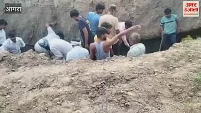 आगरा के फतेहपुरसीकरी की सीमा से सटे राजस्थान के गांव में मिट्टी की ढाय गिरने से दर्जनभर लोग दब गए। सभी फतेहपुरसीकरी के निवासी बताए जा रहे हैं। घटना में तीन महिला समेत चार की माैत हो गई।