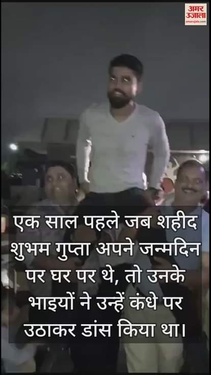 वहीं एक साल पहले शहीद शुभम गुप्ता जब अपने जन्मदिन पर घर पर थे, तो उस समय का एक वीडियो सामने आया है। इसमें उनके भाई राजीव और नितिन गुप्ता शुभम को कंधे पर उठाकर डांस कर रहे हैं। इस वीडियो में पुरानी यादों को देख आज हर किसी की आंखें नम हैं। तो वहीं देश पर प्राण न्योछावर करने वाले बेटे पर गर्व भी है।