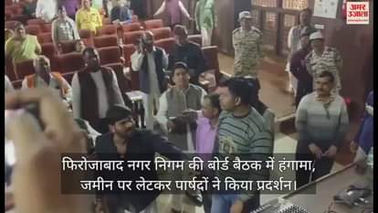 VIDEO : फिरोजाबाद नगर निगम की बोर्ड बैठक में हंगामा, जमीन पर लेटकर पार्षदों ने किया प्रदर्शन