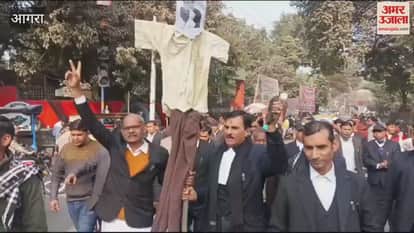 VIDEO : गृह मंत्री अमित शाह की आंबेडकर वाली टिप्पणी पर भड़के अधिवक्ता, आगरा में दहन किया पुतला