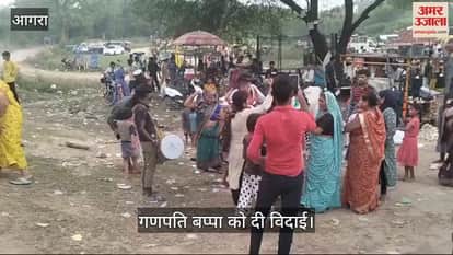 VIDEO : गणपति बप्पा को दी विदाई, ढोल नगाड़ों की धुन पर नाचते गाते कैलाश घाट पहुंचे भक्त