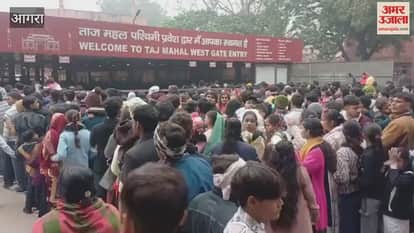 VIDEO: नए साल पर ताजमहल में उमड़ी भीड़, 50 हजार पर्यटकों ने किया दीदार