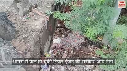 उत्तर प्रदेश के आगरा में नाला चोक हैं। बारिश के पानी से नाले उफना गए हैं। गंदा पानी सड़कों पर भर रहा है। इससे हादसे भी हो रहे हैं। इसके लेकर गुरुवार को आप आदमी पार्टी के कार्यकर्ताओं ने विरोध जताया। वरिष्ठ आप नेता कपिल बाजपेई एवं प्रदेश सचिव कृष्ण गोपाल उपाध्याय ने संयुक्त रूप से नालों का निरीक्षण किया। इसमें बेहद गंदगी पाई गई। उसके आसपास की दीवारें भी टूटी पाई गई हैं।