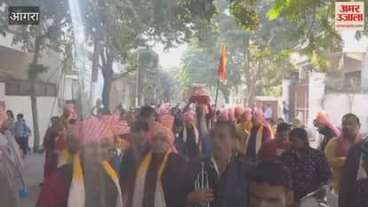 आगरा के कमला नगर स्थित भोलेबाबा पार्क में श्रीमद भागवत कथा का आयोजन किया गया है। कथा से पूर्व धूमधाम से कलश यात्रा निकाली गई। इसमें बैंडबाजों की धुन पर श्रद्धालु थिरकते हुए चल रहे थे।