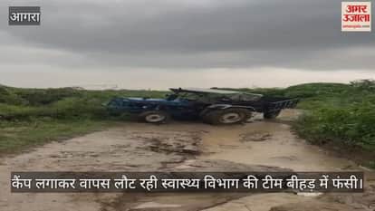 गांव में शिविर के बाद सोमवार शाम 4:30 बजे के करीब स्वास्थ्य विभाग की टीम ट्रैक्टर-ट्रॉली से वापस लौट रही थी। कुछ दूरी चलने के बाद ट्रैक्टर का डीजल खत्म हो गया। करीब 15 मिनट में डीजल का इंतजाम हुआ। बारिश के बीच टीम करीब एक किमी चली होगी, पानी भरे गड्ढे में ट्रैक्टर-ट्रॉली फंस गई। नतीजतन टीम को पैदल ही निकलना पड़ा।