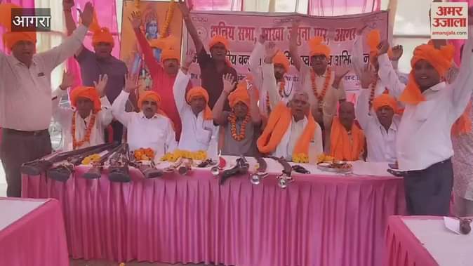 आगरा क्षत्रिय सभा शाखा यमुनापार की ओर से रविवार को सम्मान समारोह का आयोजन किया गया। कार्यक्रम की शुरुआत शस्त्र पूजन से हुई। इस दौरान समाज की आन-बान-शान की रक्षा और एकता का संदेश दिया गया। समारोह में क्षत्रिय समाज की महिलाओं ने एक-दूसरे को माला पहनाकर सम्मानित किया, जबकि बधुओं को पारंपरिक सफा पहनाकर गौरवान्वित किया गया। मुख्य अतिथि बी.एम. भदौरिया ने श्रीराम के जयघोष के साथ कार्यक्रम का शुभारंभ किया।