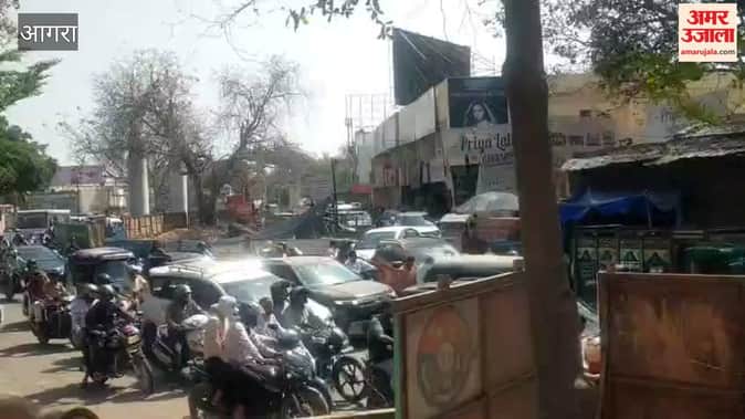 VIDEO: आगरा में एमजी रोड पर जाम, तीन घंटे तक फंसे रहे वाहन; पांच मिनट की दूरी तय करने में लगा आधा घंटा