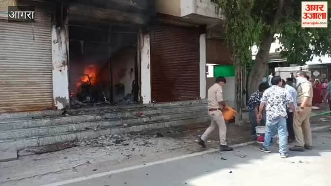 VIDEO: आगरा में ई-स्कूटी की दुकान में लगी भीषण आग, दहशत में आए लोग; दमकल ने पाया लपटों पर काबू
