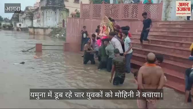 ताजनगरी आगरा के बाह क्षेत्र में बटेश्वर के रानीघाट पर मंगलवार की शाम प्रतिमा विसर्जन करते समय चार युवक गहरे पानी में पहुंच गए। वह डूबने लगे। प्रत्यक्षदर्शियों ने नदी में डूबते युवकों को देखा तो चीख पुकार मचाई। इस पर घाट पर पूजा सामग्री बेचने वाली युवती मोहिनी गोस्वामी बिना जान की परवाह किए नदी में कूद गई। डूब रहे चारों युवकों को सहारा देकर बाहर निकाला। यमुना नदी से बाहर निकले फिरोजाबाद के आकाश और हिमालय समेत चारों युवक मौके से भाग गए। नदी में डूबने वाले चारों युवकों की जान बचाने वाली मोहिनी गोस्वामी को मंदिर प्रबंधक अजय भदौरिया, नत्थीलाल गोस्वामी, पुजारी राकेश वाजपेयी ने पुरस्कृत कर उसका हौसला बढ़ाया।