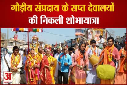गौड़ीय संप्रदाय के सप्त देवालयों की शोभायात्रा ने रविवार को श्रीबांकेबिहारी की नगरी की कुंज गलियों को भक्ति में सराबोर कर दिया। बाद में कुंभ क्षेत्र पहुंची। सप्त देवालयों के निशानों के नेतृत्व में बैंडबाजों के बीच शोभायात्रा धूमधाम से निकाली गई। जगह-जगह वृंदावनवासियों ने शोभायात्रा में शामिल ठाकुरजी और उनके भक्तों पर पुष्पवर्षा करते हुए स्वागत किया। सप्त देवालयों की भव्यता देख श्रद्धालु गदगद हो गए। धर्म और आध्यात्मिक नगरी वृंदावन के सप्त देवालयों की निकाली गई शोभायात्रा में सबसे पहले मंदिरों के निशान नेतृत्व कर रहे थे। उनके पीछे मंदिर ठाकुर मदनमोहन, मंदिर गोविंद देव जी, मंदिर श्री राधागोपीनाथ जी, मंदिर श्रीश्री राधेश्याम सुंदर जी, मंदिर श्री राधारमण मंदिर, मंदिर श्री राधादामोदर और मंदिर श्री गोकुलानंद की सवारी थीं। सजे हुए डोलों में ठाकुरजी विराजमान थे। उनके साथ सप्त देवालयों के प्रमुख आचार्य एवं सेवायत चल रहे थे। दर्शन की अभिलाषा में रास्तों में खड़े लोग रथ और डोलों में विराजमान ठाकुरजी को नमन करते हुए निहारते नजर आए। सेवायतों की चरण वंदना कर रहे थे। शोभायात्रा का प्रमुख हिस्सा बनीं संकीर्तन करती मंडलियां और भजनों की धुन पर थिरकते श्रद्धालु धर्म नगरी के वातावरण को एक दिव्य आध्यात्मिक स्वरूप प्रदान करते दिखाई दिए।