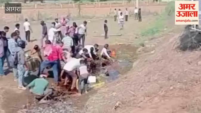 VIDEO: खाई में पलटा सरसों के तेल का टैंकर, तेल लूटने को मची ऐसी होड़; बाल्टी-बोतलें लेकर दाैड़ पड़े ग्रामीण