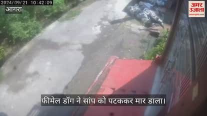 फीमेल डॉग ने सांप को मुंह में दबाया और पहले सड़क पर पटका फिर काटा। फिर पटक-पटक करके सांप को मार डाला। यह पूरी घटना वहां एक घर में लगे सीसीटीवी में कैद हो गई। लोगों ने देखा तो यह चर्चा का विषय बन गया।